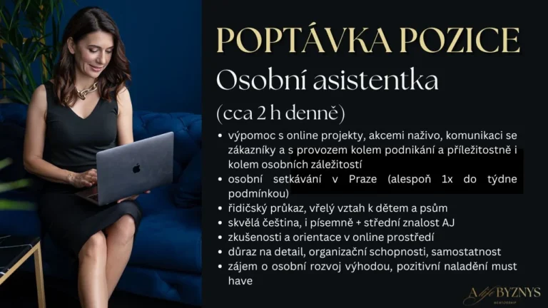 Pro mě a moji společnost Alifebyznys, která se věnuje tvorbě vzdělávacího online obsahu s osobním rozvojem a podporou pro podnikatelky, se uvolnila pozice asistentky s časovou investicí cca 2 – 3h denně.